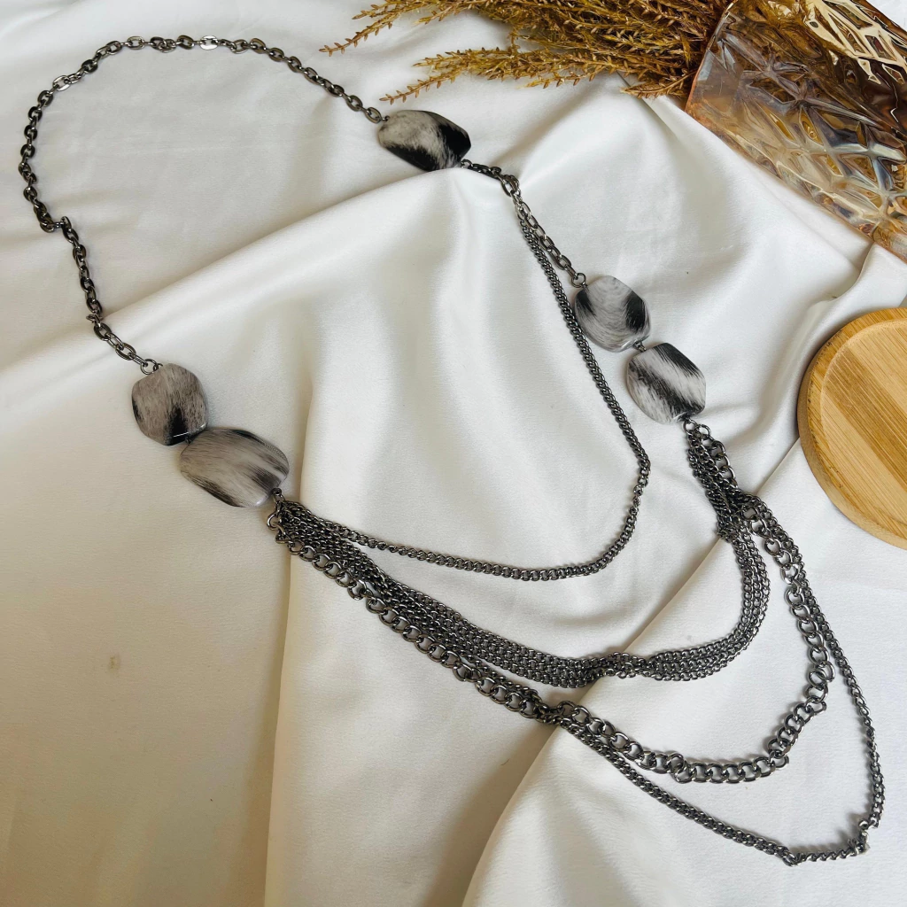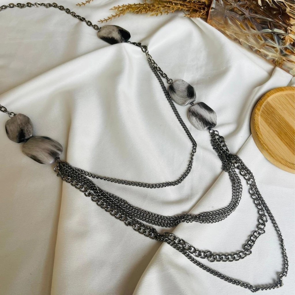 Colar Suzana Descubra a elegância do Colar Suzana, um colar longo dourado que se destaca pela sofisticação dos seus pingentes em duas combinações distintas. Com regulagem de altura, adapta-se perfeitamente ao seu estilo e ocasião. O detalhe na corrente atrás acrescenta um toque exclusivo e refinado, ideal para quem busca um acessório versátil e cheio de charme. Perfeito para elevar qualquer produção com delicadeza e requinte.
