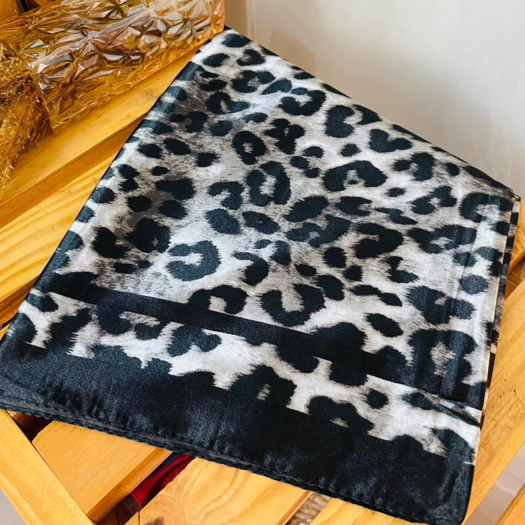 Descubra o Lenço animal print, uma peça sofisticada em seda com estampa moderna de onça que traz o charme para seu visual, trazendo personalidade para o look. Com tamanho 90x90 cm, é perfeito para adicionar um toque de elegância e personalidade ao seu look. Leve, macio e versátil, este lenço é ideal para diversas ocasiões, elevando sua produção com delicadeza e estilo. Cuidados especiais garantem sua durabilidade e beleza por muito tempo. Surpreenda-se com a combinação perfeita entre arte e moda!
